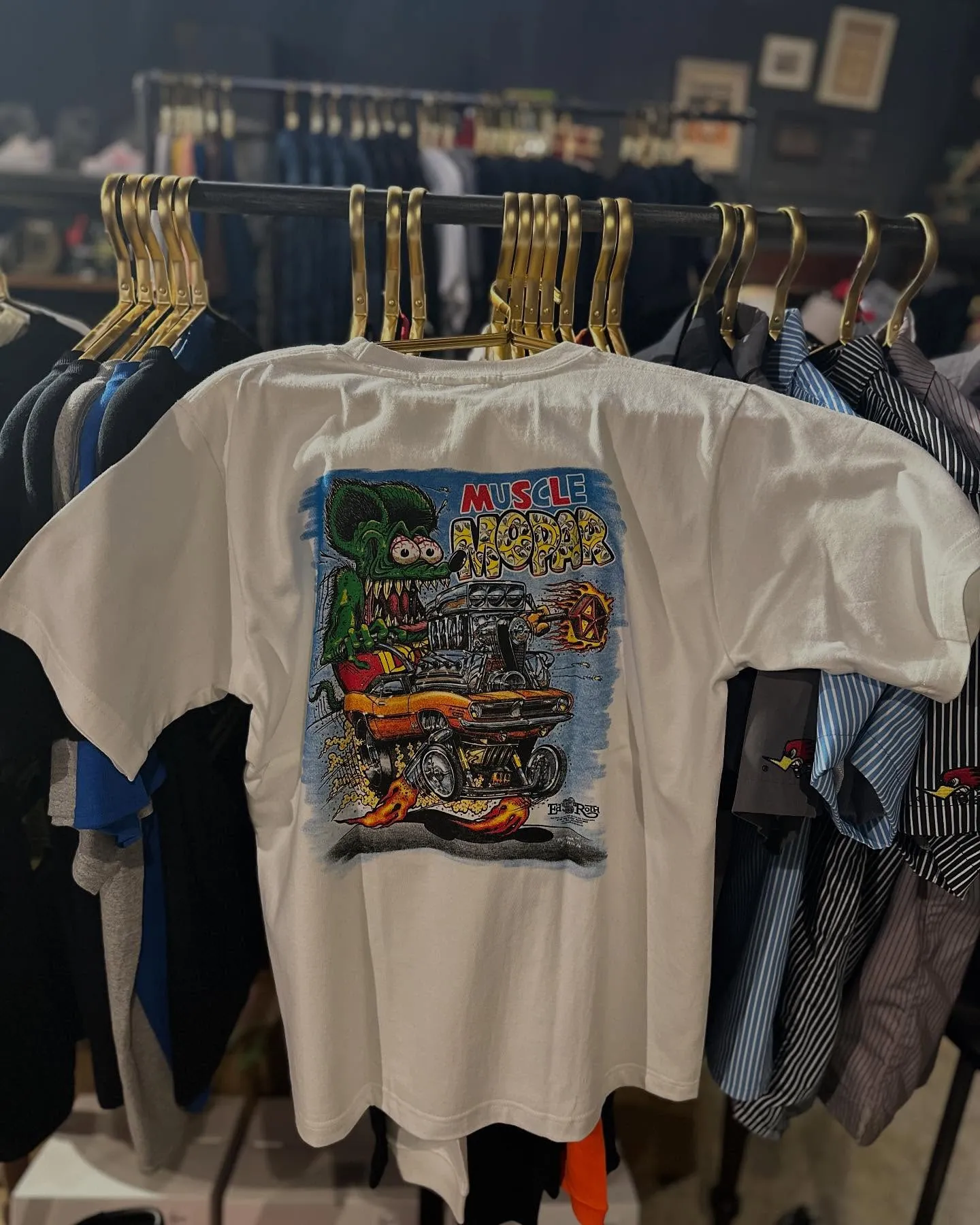 【アパレル】夏物Tシャツ店頭に並んでます🤗Moon×RatFinkこのデザインはグっと刺さります🌟皆さまのご来店お待ちしております♪#コイマールガレージ#コイガレ#koimaarugarage#muttmotorcycles九州#マットモ…